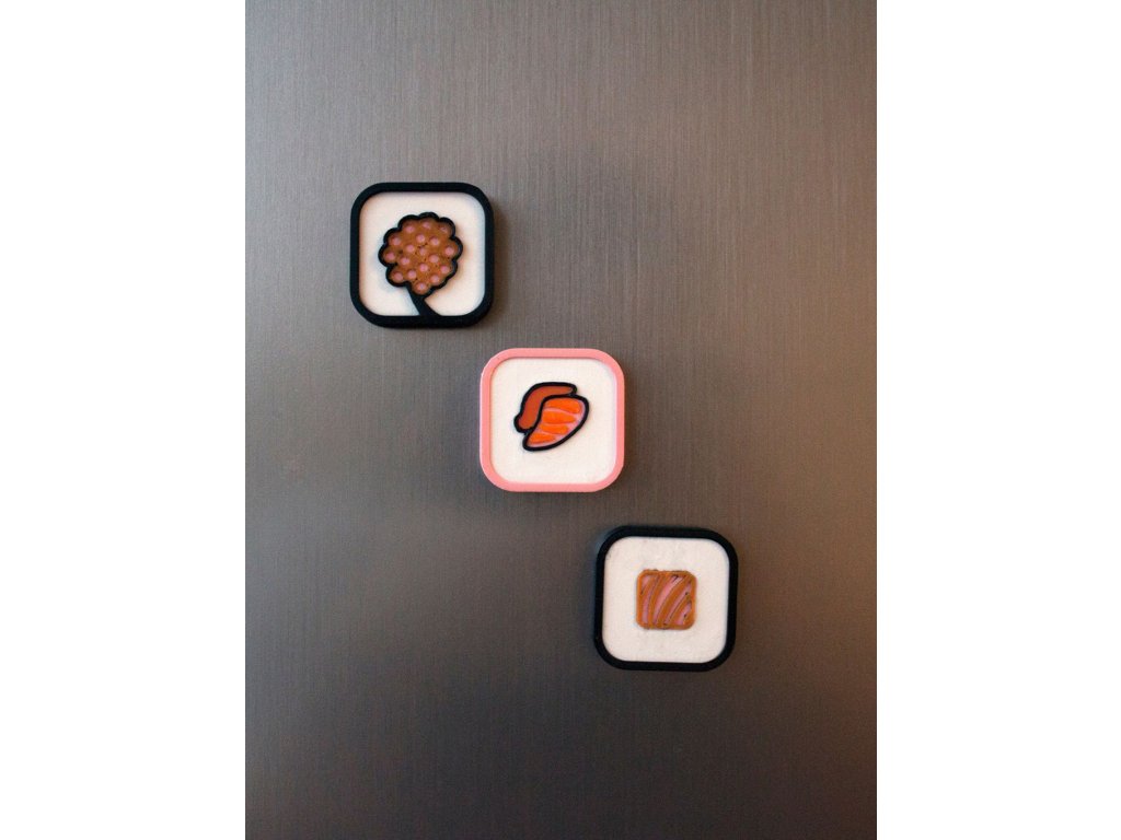 Roztomilé Sushi magnetky pro všechny milovníky Japonského jidla! 3D tištěné z ekologického PLA, každá s jiným výrazem. Rozměry 40x30 mm, výška 6 mm. Stylová dekorace i praktický doplněk na lednici či nástěnku.